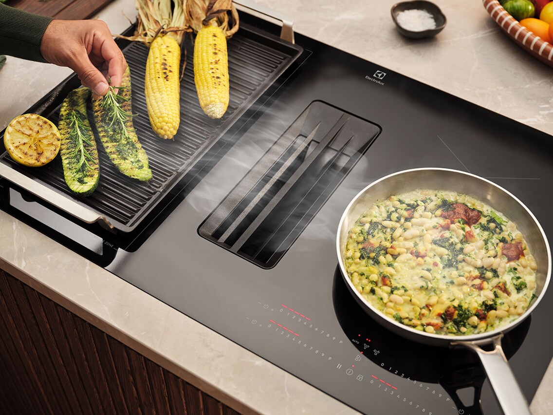 Electrolux indukcijske ploče s ugrađenom napom spajaju dizajn i funkcionalnost u jednom uređaju. Održavaju vašu kuhinju čistom bez mirisa hrane, masnoće i para te omogućujući veću fleksibilnost u dizajnu kuhinje.