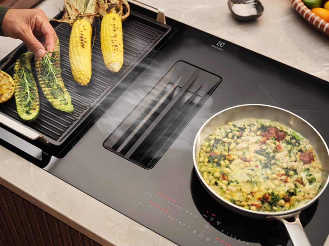S Electrolux indukcijskim pločama za kuhanje s ugrađenim napama, dobivate dizajn i funkcionalnost u jednom proizvodu. Osim što će vaša kuhinja biti bez masnoće i pare, imate i veću slobodu pri uređenju kuhinjskog prostora.