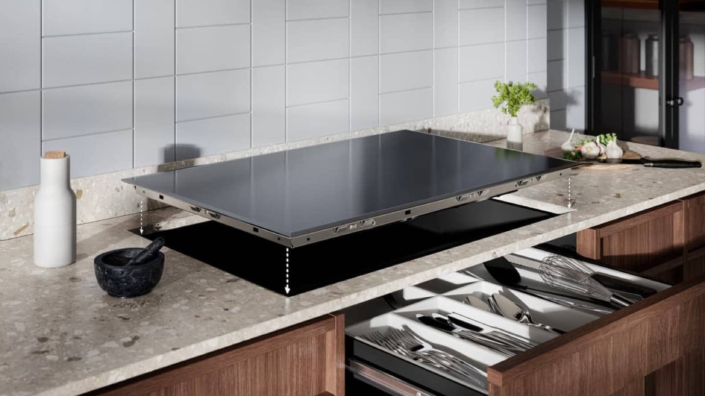 Neće imati utjecaja na vaš namještaj* i ne zahtijeva nikakve ventilacijske otvore. Budući da zrak cirkulira ispod ploče za kuhanje, možete čak imati ladicu ili ugradbenu pećnicu izravno ispod ploče za kuhanje.