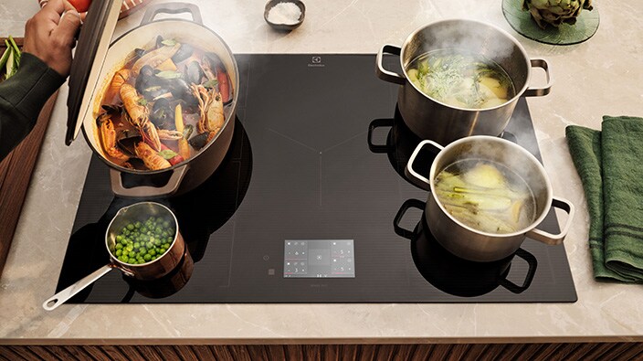Electrolux indukcijske ploče s ugrađenom napom spajaju dizajn i funkcionalnost u jednom uređaju. Održavaju vašu kuhinju čistom bez mirisa hrane, masnoće i para te omogućujući veću fleksibilnost u dizajnu kuhinje.