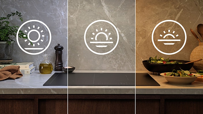 Prilagodljiva LED rasvjeta osvjetljava cijelu površinu za kuhanje, omogućujući iznimnu vidljivost. Podesite jačinu i temperaturu svjetla, od hladne do tople, i pronađite savršenu kombinaciju za svoju kuhinju.
