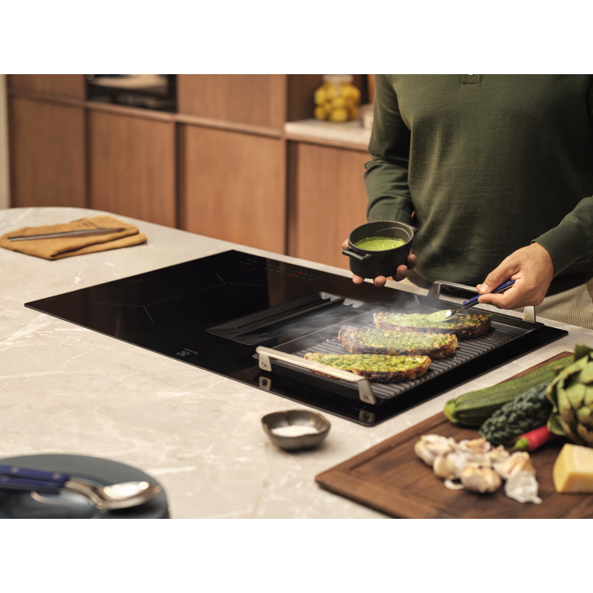 Uživajte u brojnim prednostima indukcijske ploče za kuhanje koja stane u ormarić od 60 cm s ugrađenom kuhinjskom napom za optimalan protok zraka. 600 Bridge ploča za kuhanje s kuhinjskom napom ima i funkciju Bridge, koja vam omogućuje povezivanje dviju zona kuhanja u jedinstvenu veliku površinu.