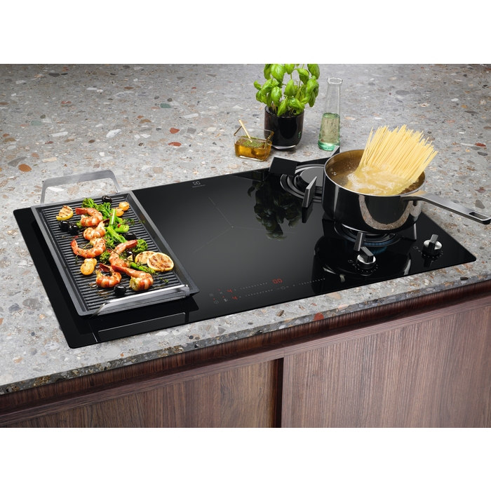 Zahvaljujući kombinaciji plinskih plamenika i električnog polja kuhanja, možete izvor topline prilagoditi jelu.