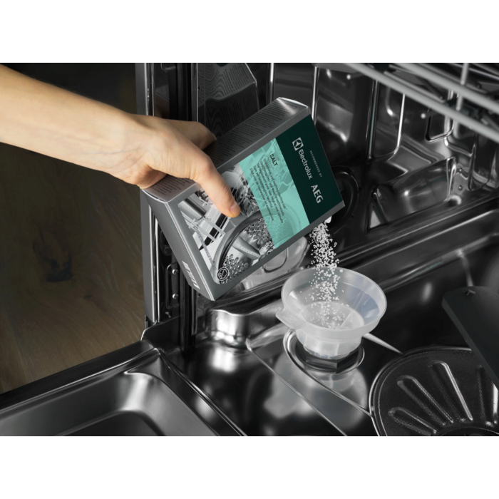 Naša sol zaustavlja nakupljanje kamenca i kalcija koji negativno utječu na vaše uređaje. Ta se sol može koristiti u perilicama posuđa i odabranim perilicama rublja kako bi vaše posuđe sjalo i vaša obojena odjeća izgledala živopisno.