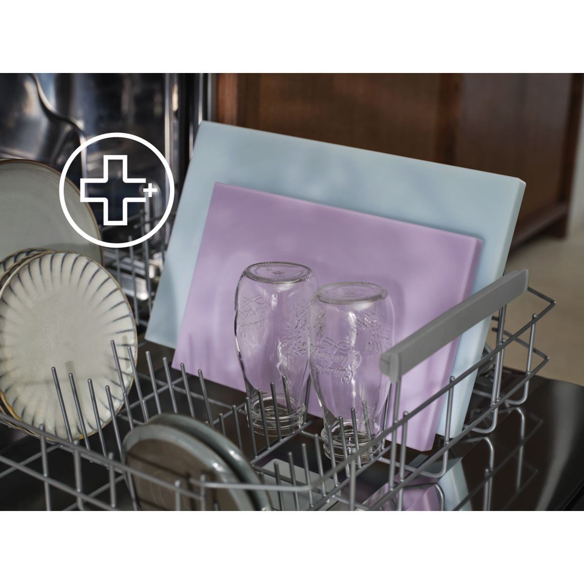 Višekutna prskalica daje seriji 600 dodatnu pokrivenost mlazovima. Prostrane košare s preklopnim redovima olakšavaju punjenje uz jednostavan odabir ciklusa prema vremenu.