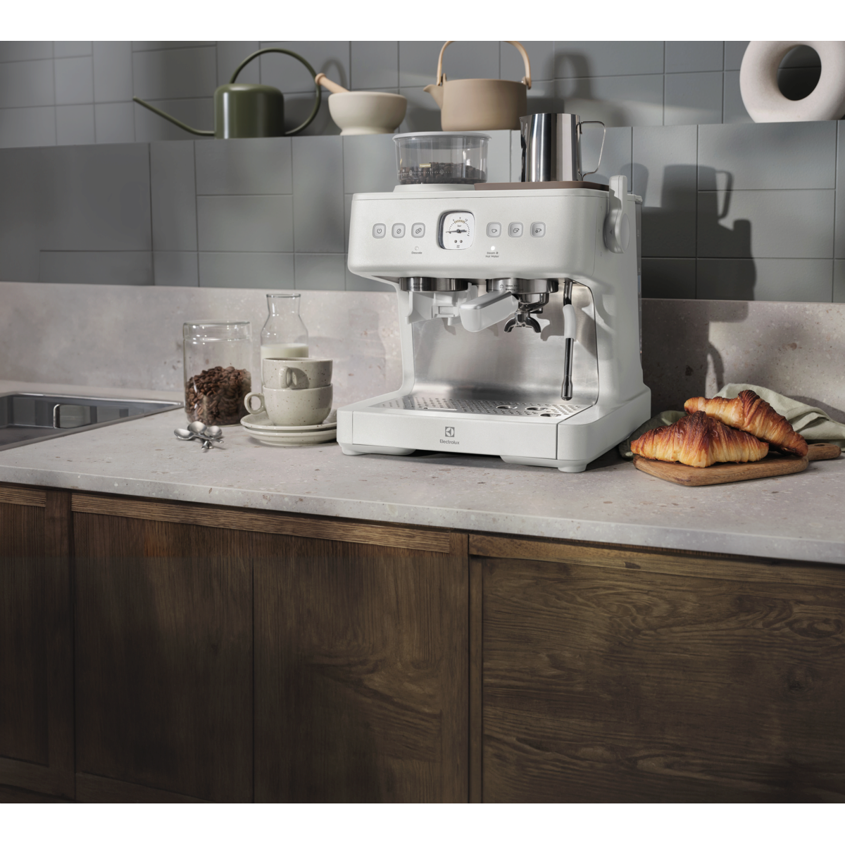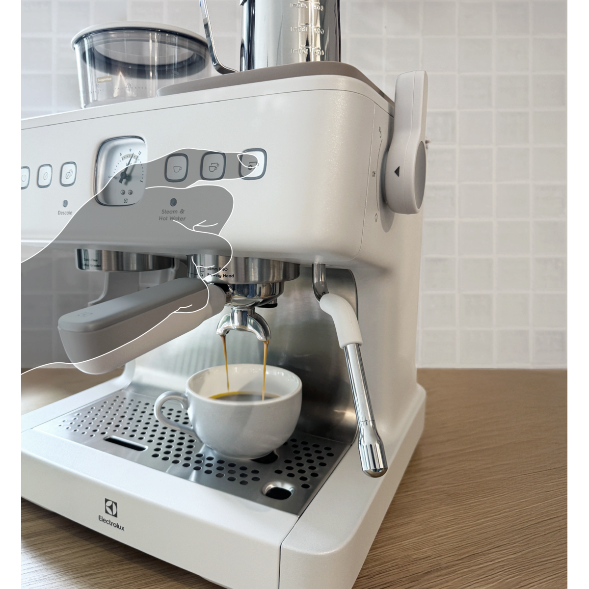 Tehnologija dvostrukog Thermoblocka osigurava dosljedne temperature za kuhanje i parenje. Učinkovit sustav grijanja omogućuje istovremenu ekstrakciju espressa i pjenjenje mlijeka, uživajući u svježe pripremljenoj kavi bez čekanja.