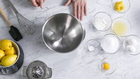 25 g brašna, 170 g šećera, 100 g soka od limuna, dva jaja, jedan žumanjak