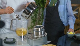 Premjestite kuhani pastrnjak u Electroluxov blender MasterPiece, dodajte temeljac i sojino mlijeko pa miksajte dok ne dobijete ujednačenu smjesu. Ako je to potrebno, dodajte još temeljca da biste postigli ujednačenost.