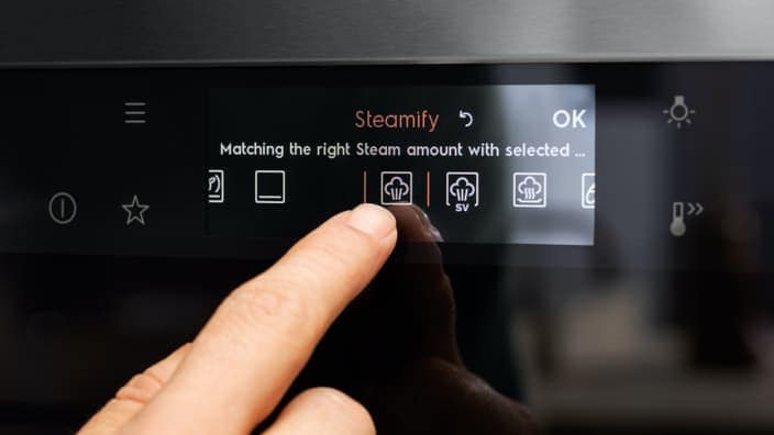 Kada trebate upute o odgovarajućim postavkama za svoje jelo, naš Steamify® će vam to olakšati. Unesite temperaturu kuhanja koju biste inače primijenili, a pećnica će automatski prilagoditi postavke, što znači da će vaše jelo biti izloženo onoj količini pare koja je potrebna za savršene rezultate. Za zdraviju i ukusniju hranu upoznajte našeg stručnjaka za paru.