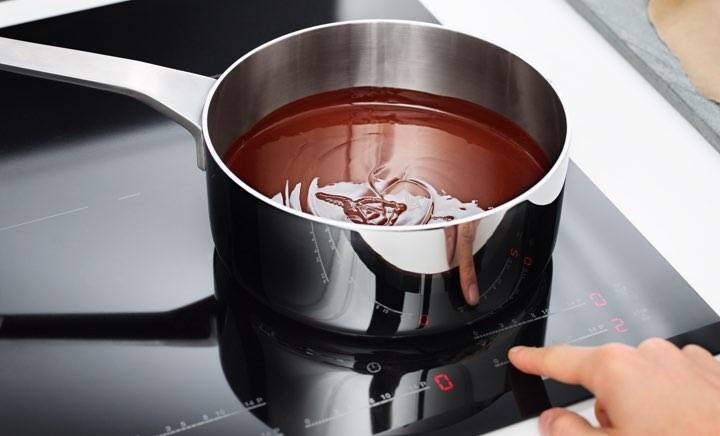 1Otopite čokoladuNa indukcijskoj ploči lagano otopite 1/2 šalice tamne čokolade dok ne bude glatka i jednolika.
